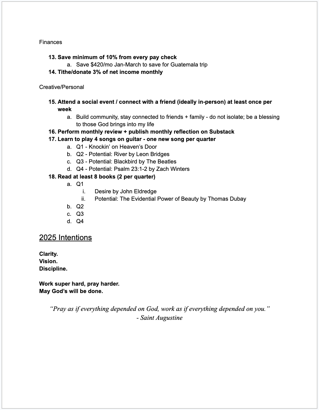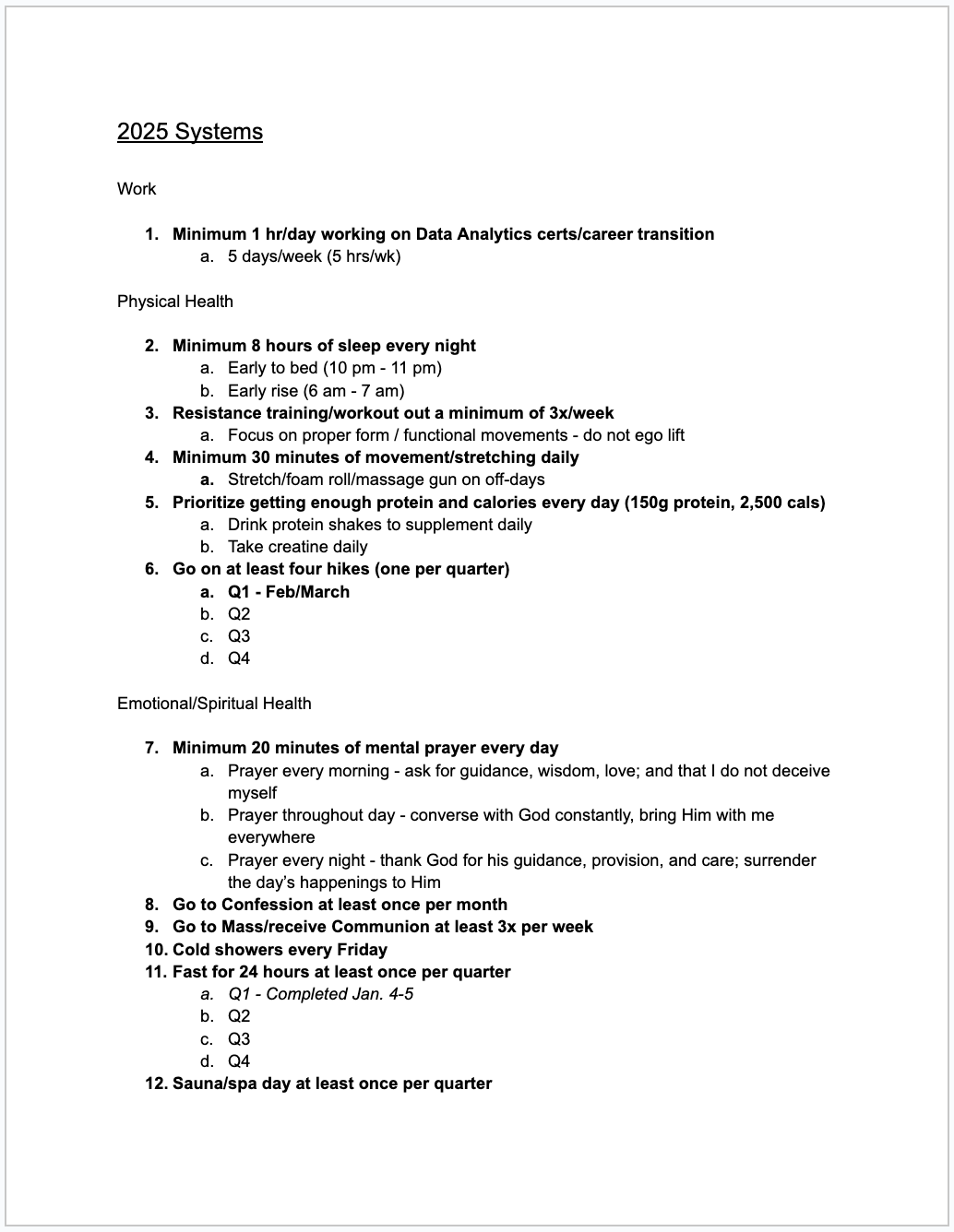 Admittedly, I do still have some outcome-oriented goals for 2025, but I’m holding onto these very lightly. Meanwhile, I’m channeling the majority of my energy and focus into my daily, weekly, and monthly systems.
